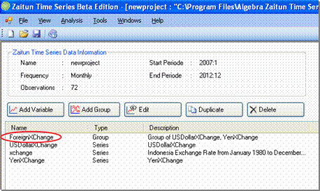 - Click the OK button. Zaitun Time Series will add this group into current project