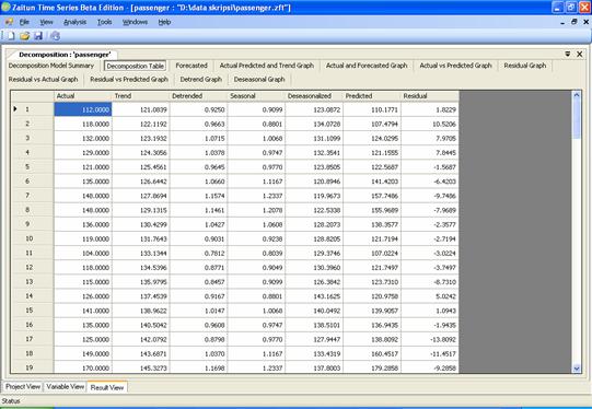 The result views of decomposition analysis in Zaitun Time Series are grouped into two categories, they are tables and graphics. The details of them are described here: