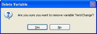 - Click the Delete button. A confirmation dialog appears. Click Yes if you are sure you wish to delete the selected variable/group