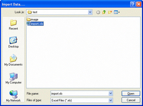 - The Open Excel dialog appear. Select the Excel file you want to import