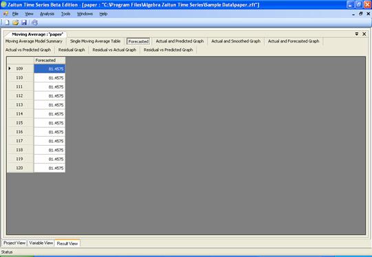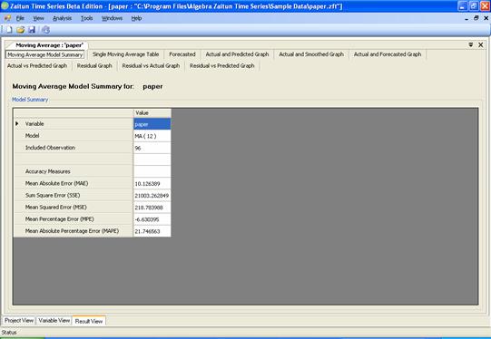 The result views of moving average analysis in Zaitun Time Series are grouped into two categories, they are tables and graphics. The details of them are described here: