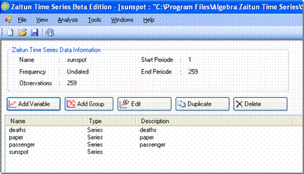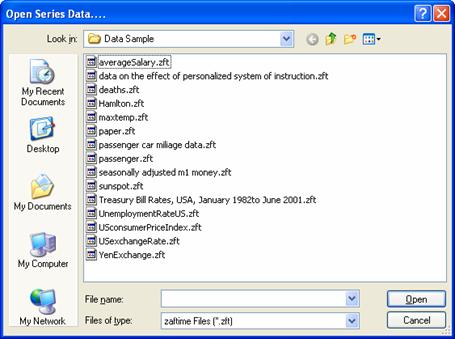 - Click the Open button. Zaitun Time Series will open the selected project file.