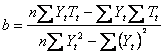 b = Coefficient of trend line direction
